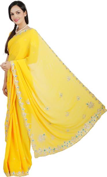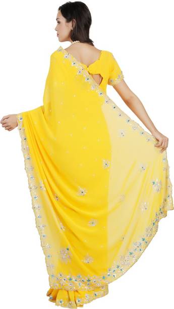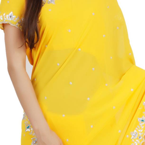 Live With Style Embellished Fashion Georgette Saree (Yellow)