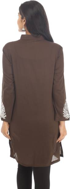Rejuvenate yourself with an exclusive brown tunic brought to you by the reputed brand of Live With Style which works to design, produce and deliver the best in lifestyle essentials. This exquisite tunic is exhibiting great fit stitching all over and is designed with a stylish neck. Don it with contrast leggings and summer sandals to look your best. Plus, this tunic is fabricated with supreme quality material which makes it soft to skin and easy to wash. Amaze your look with this piece in no time.