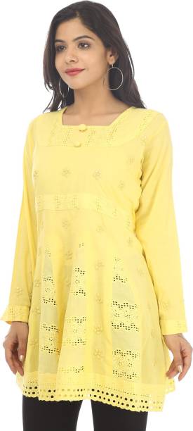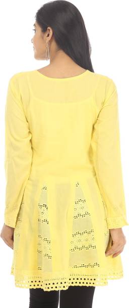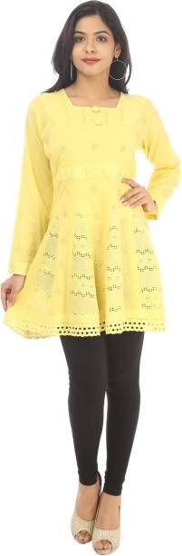 This yellow tunic from Live With Style is certainly the pick of the season for urbane girls out there. Made from premium quality material, this tunic is light in weight and comfortable to wear. Featuring amazing pattern, this tunic is an ideal pick against your valuable currency. Club this tunic with black trousers and heels when heading for a dinner with your beloved. You can also step out in this piece with your all time favourite sandals and garner compliments. It is a must buy product.
